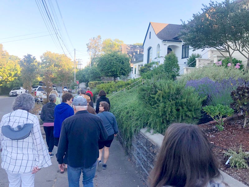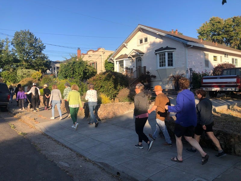 We put the Wednesday Walk and the Wednesday Picnic on the same day, so that people walking alone will see something happening at the local park and maybe think: Maybe next Wednesday I’ll send an email to my neighbors and say come down. And again: What’s the worst thing that can happen? You had a nice walk by yourself, or a nice sandwich by yourself in the local park.